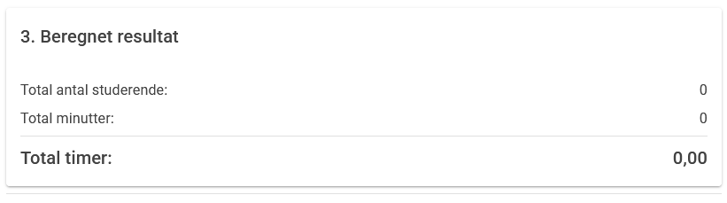 Beregnet resultat – Dette felt kræver ingen indtastning. Her vises det samlede antal timer, som systemet har beregnet ud fra de definerede normregler.