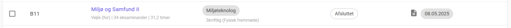 Prøvedato(er) – Her vises først et ikon, der angiver, om eksamen er en skriftlig eller mundtlig prøve.