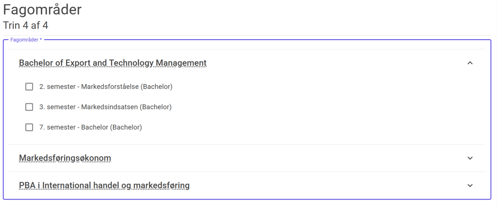 Trin 4: Fagområder