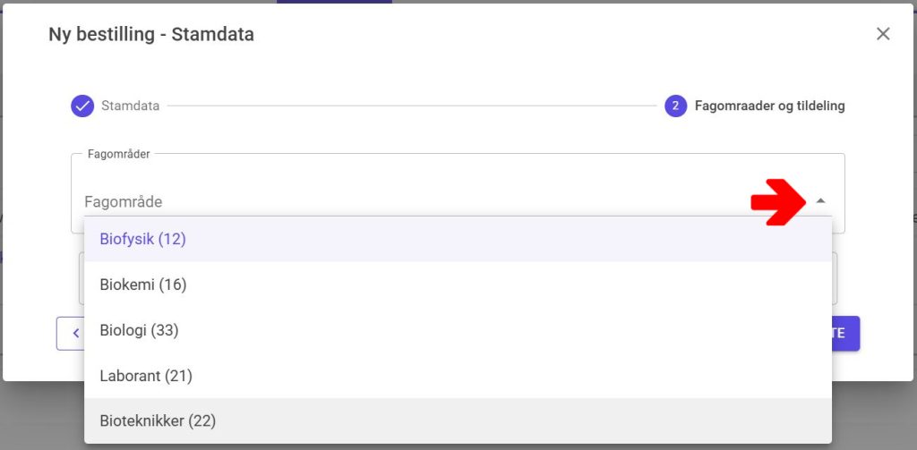 Det er muligt at tilføje flere søgekriterier samtidigt, såsom at tilføje tre forskellige fagområder oprettet af en special person.