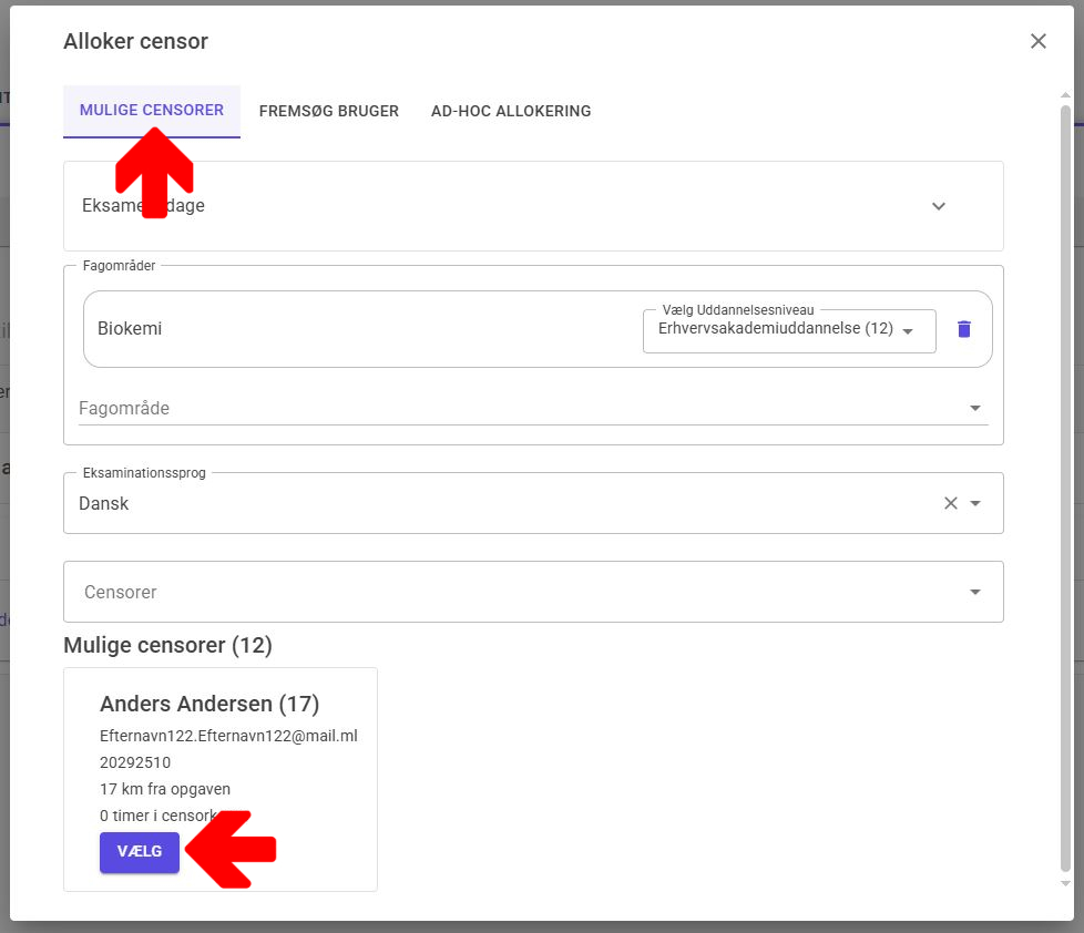- Afventer allokering – Systemet har sendt forespørgsler ud til censorer, men der er endnu ikke kommet svar.
