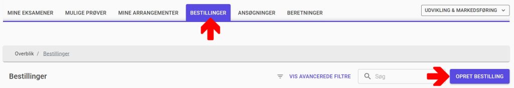 Under hovedmenupunktet Bestillinger håndterer vi oprettelse og redigering af censorbestillinger.