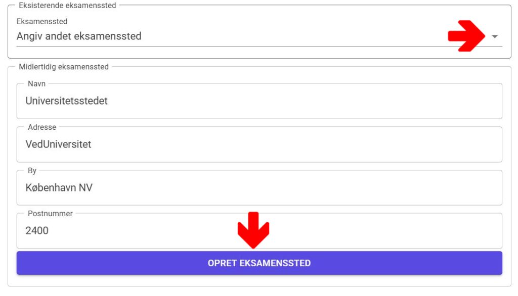 Dernæst kan du se, hvilket uddannelsesudbud bestillingen er knyttet til. Her fremgår det også, om eksamen er planlagt som skriftlig eller mundtlig, og om den afholdes fysisk, online eller som en kombination af begge.